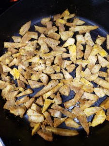 I added one cup of the mix and a cup of unsweetened coconut milk. Tossed in the rest of the onion that I hadn’t used for the curry. I quickly steamed in the microwave two leaves of mustard greens that were in my fridge and chopped them up and through it into the pancake mix. I tossed in some more of the curry spice blend. I through in some egg white I had left over from making cupcake frosting last night. I coated my cast iron pan with ghee and poured in the pancake mix.